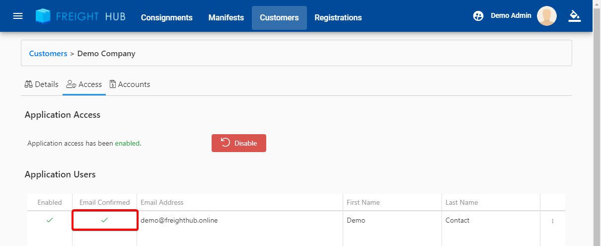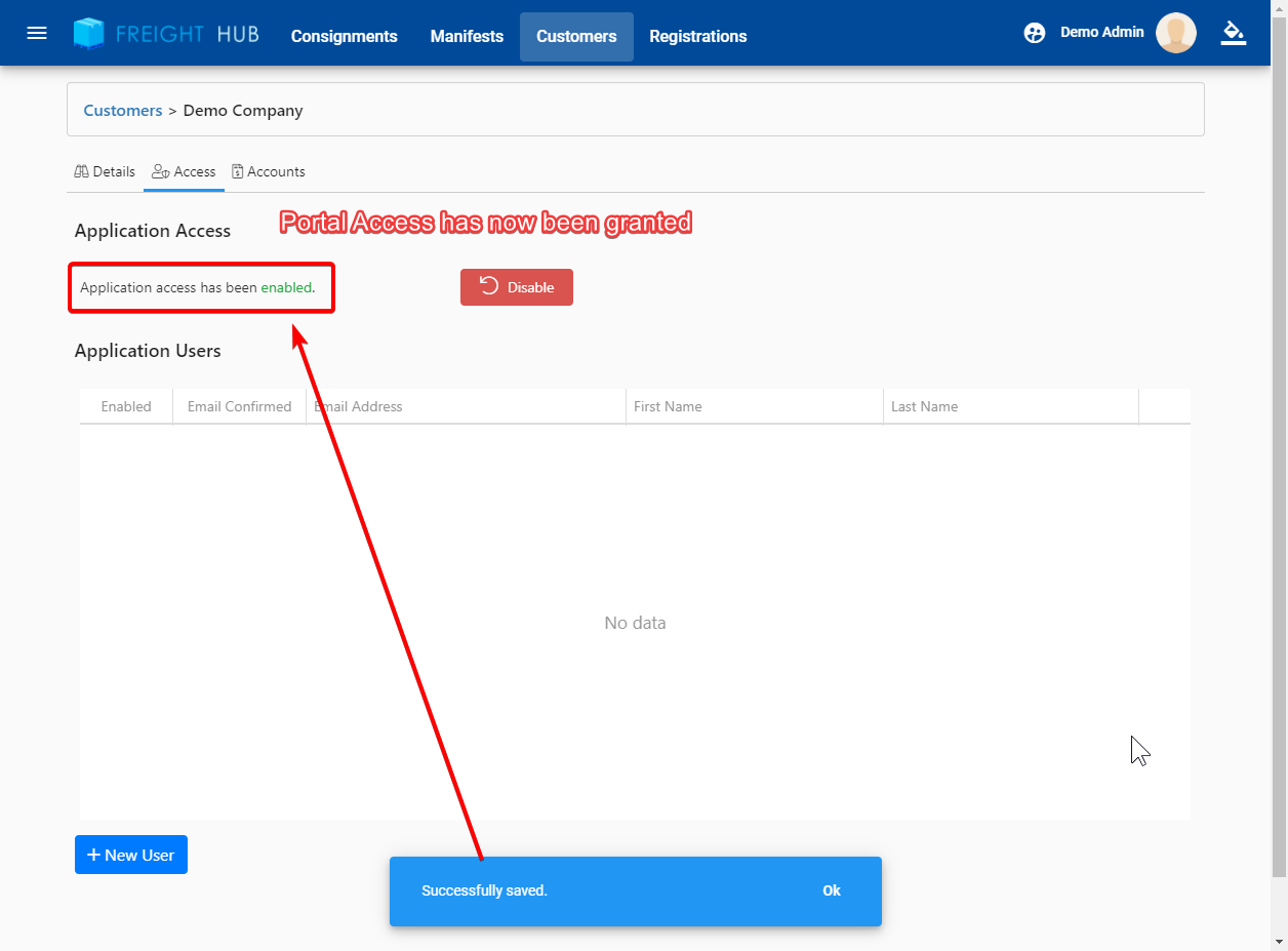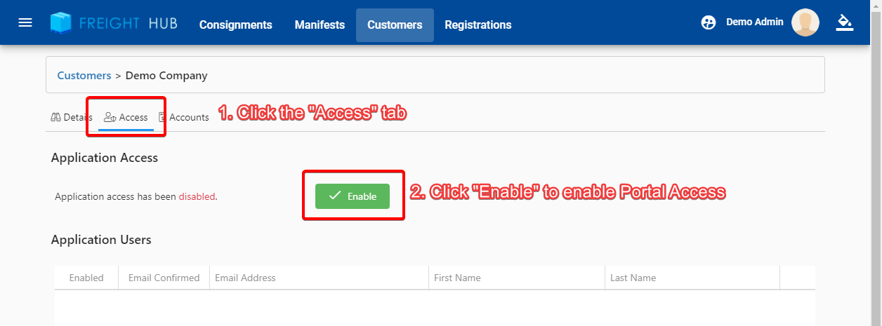 - Click the "Access" tab and then click "Enable" to enable Portal access: